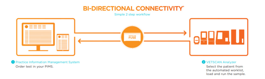 The Fuse integration is a Bi-Directional integration that allows your Abaxis/Zoetis devices such as the VS2 and HM5 to receive orders prior to running the actual tests.